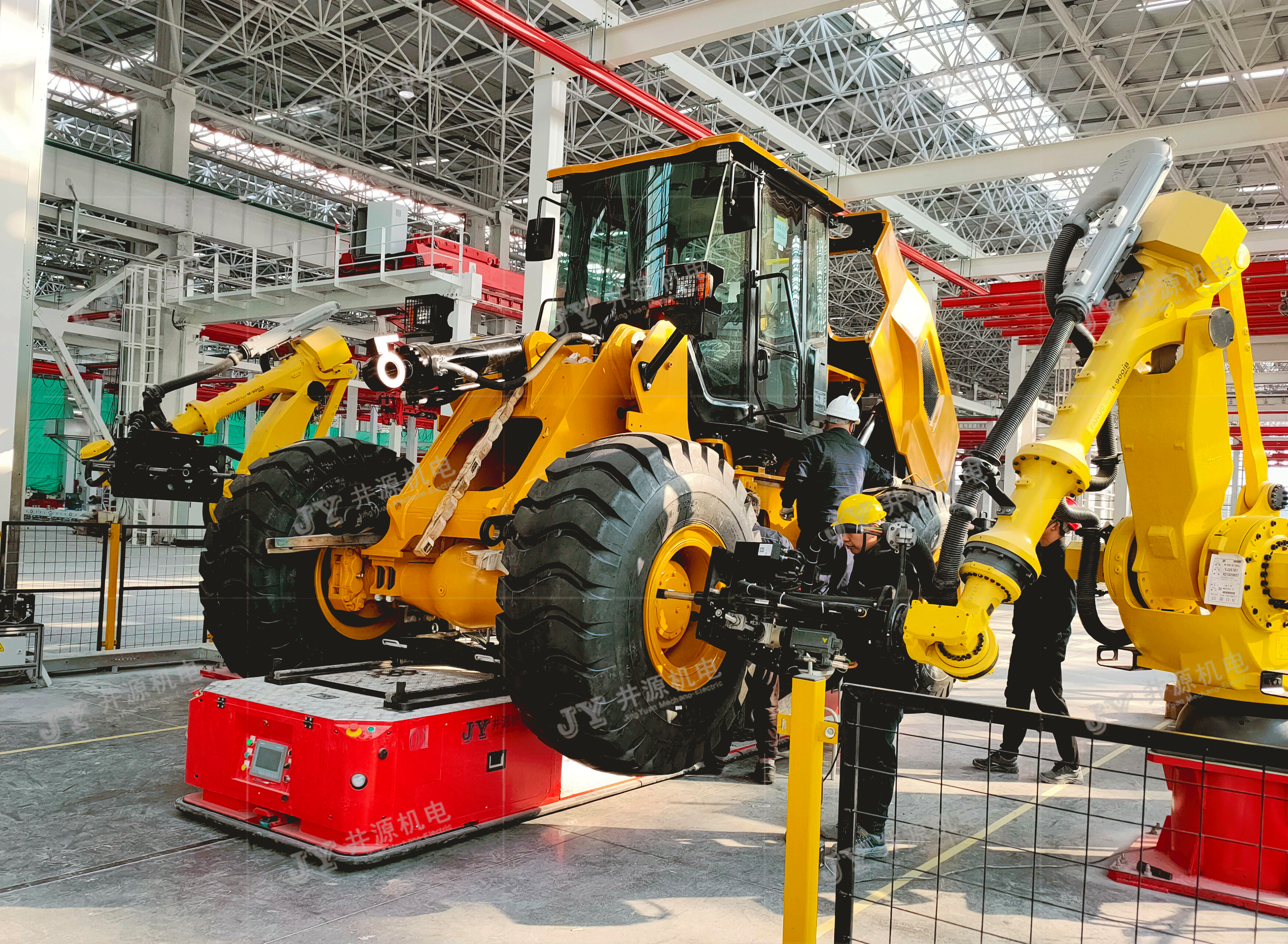 On February 17, the first complete loader of Sany Huzhou Lighthouse Factory was successfully launched. As a partner supplier of the heavy-duty AGV assembly line for this project,JY had the honor to witness the customer's "new start and new journey".