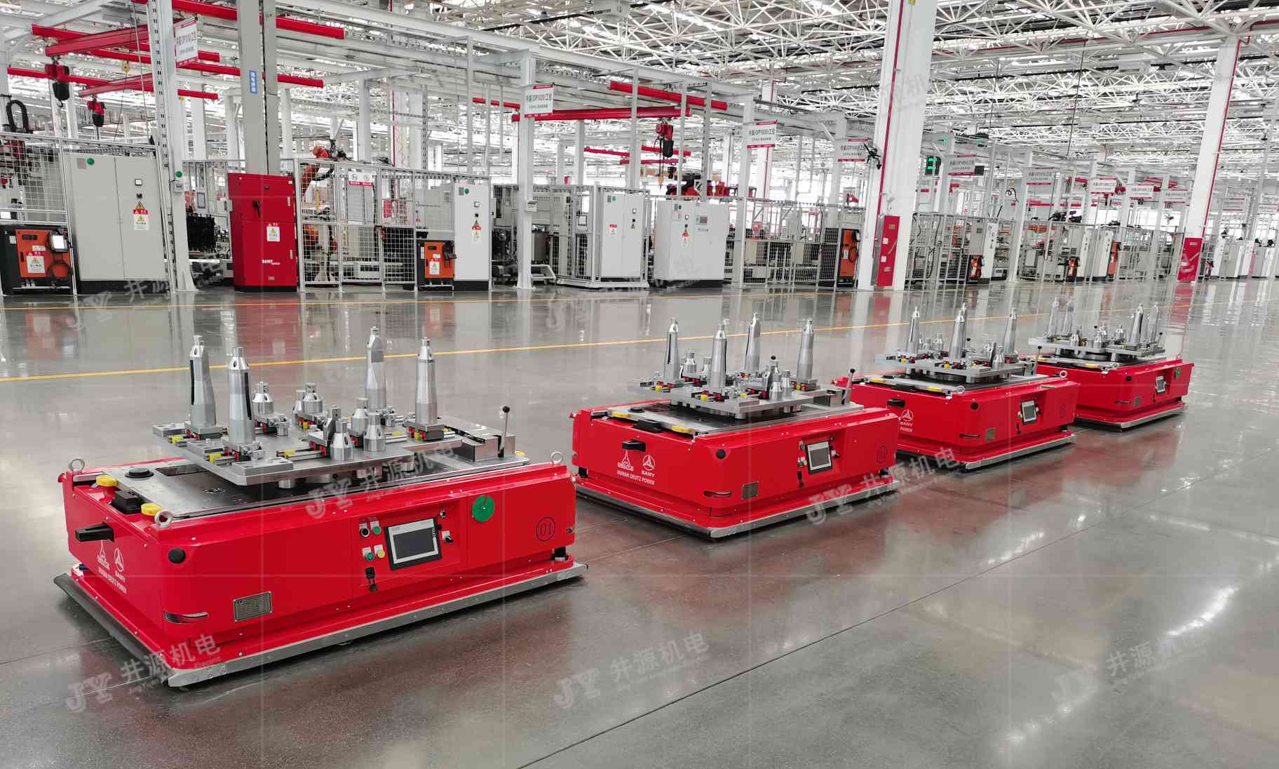 In order to improve work efficiency and achieve automated material transfer, a domestic diesel engine factory has adopted JY bidirectional roller conveyor AGV and a bidirectional latent lifting AGV in the assembly line and ingredient area. The AGV is compatible with two AGV devices under one AGV scheduling system, achieving reasonable scheduling of multiple devices and meeting the requirements for tray return transportation on the diesel engine assembly line and the transfer of components in the ingredient area. The AGV adopts tape navigation mode, The load capacity is 1000KG, meeting the needs of customers for 300 working days and 10 hour two shift production. This project not only greatly improves production efficiency, but also saves space for project equipment, reduces labor costs, makes workshop equipment management more reasonable, and provides the possibility for subsequent production and capacity expansion.