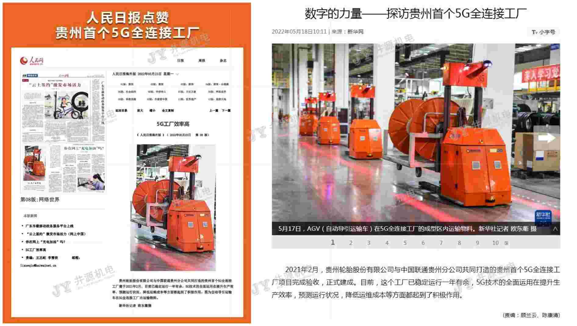 Guizhou Tire's 5G smart factory was praised by People's Daily and Xinhua News Agency (assisted by Jingyuan 5G smart AGV)