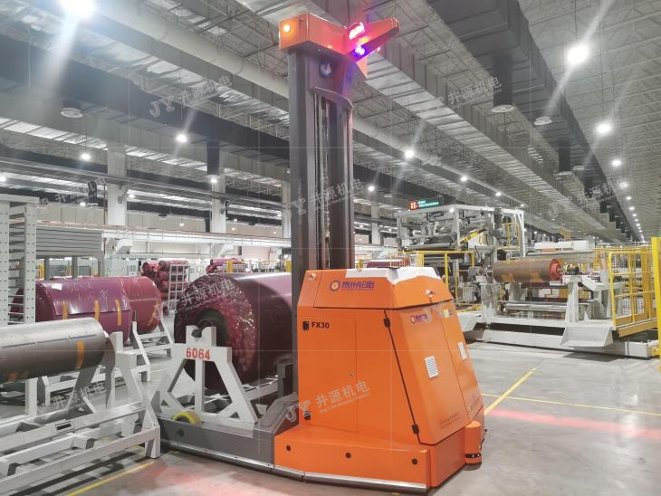 Jingyuan AGV is mainly used for automatic identification, transportation and storage of films, semi-parts, and molding materials in production lines, three-dimensional warehouses or plane warehouses, and forming machines in the tire production process. Its handling tooling is diverse, there are 8 types of material tooling for trolleys and louvered vehicles, with weights ranging from 1000KG to 4000KG, and lifting heights of 1.5 meters, 2.7 meters, 6 meters, etc.