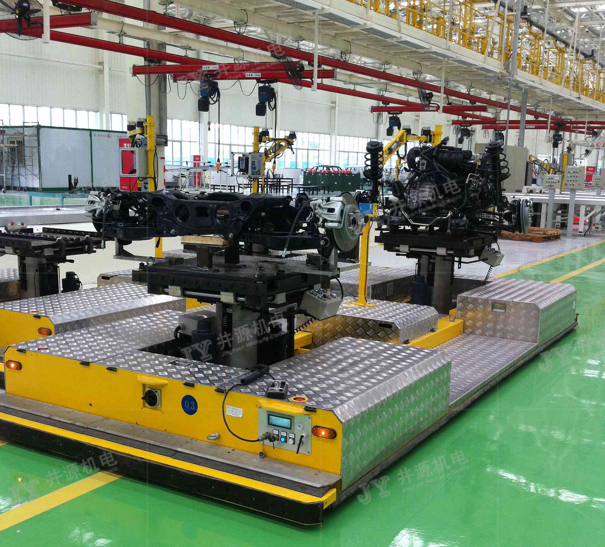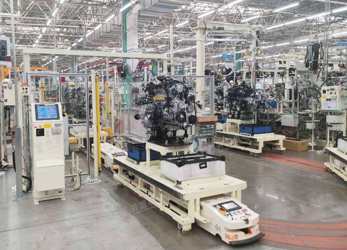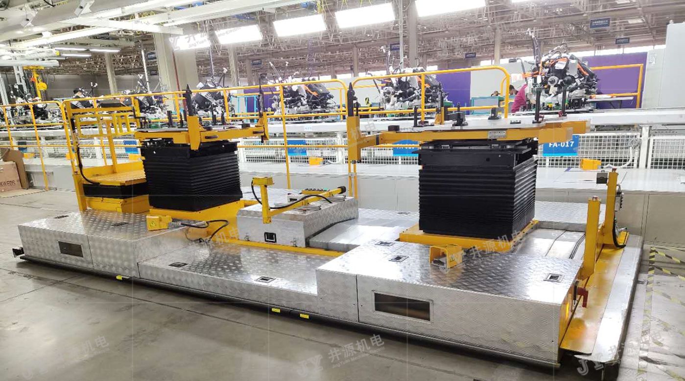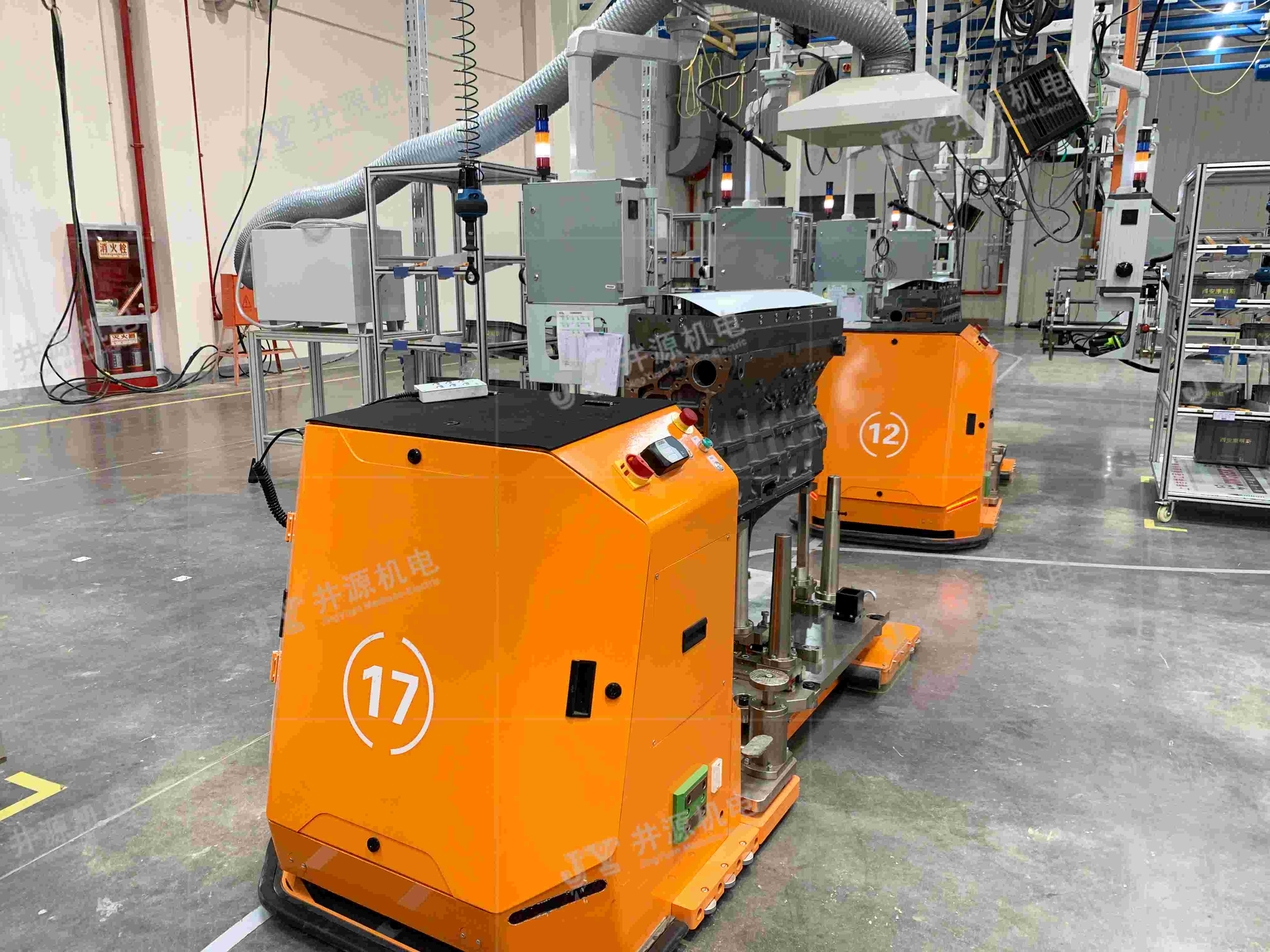 On the engine assembly production line, the Jingyuan Electromechanical Flexible Assembly AGV can meet the requirements of mixed production of multiple models. At the same time, the assembly AGV can automatically adjust the engine to the optimal assembly posture according to the height of the operator, thereby reducing the difficulty of manual operations and improving production efficiency. The automatic docking, handling, lifting, rotating, and manual assembly functions of engines are important management methods for enterprises to achieve intelligent, information-based, flexible, and humanized production of engines.